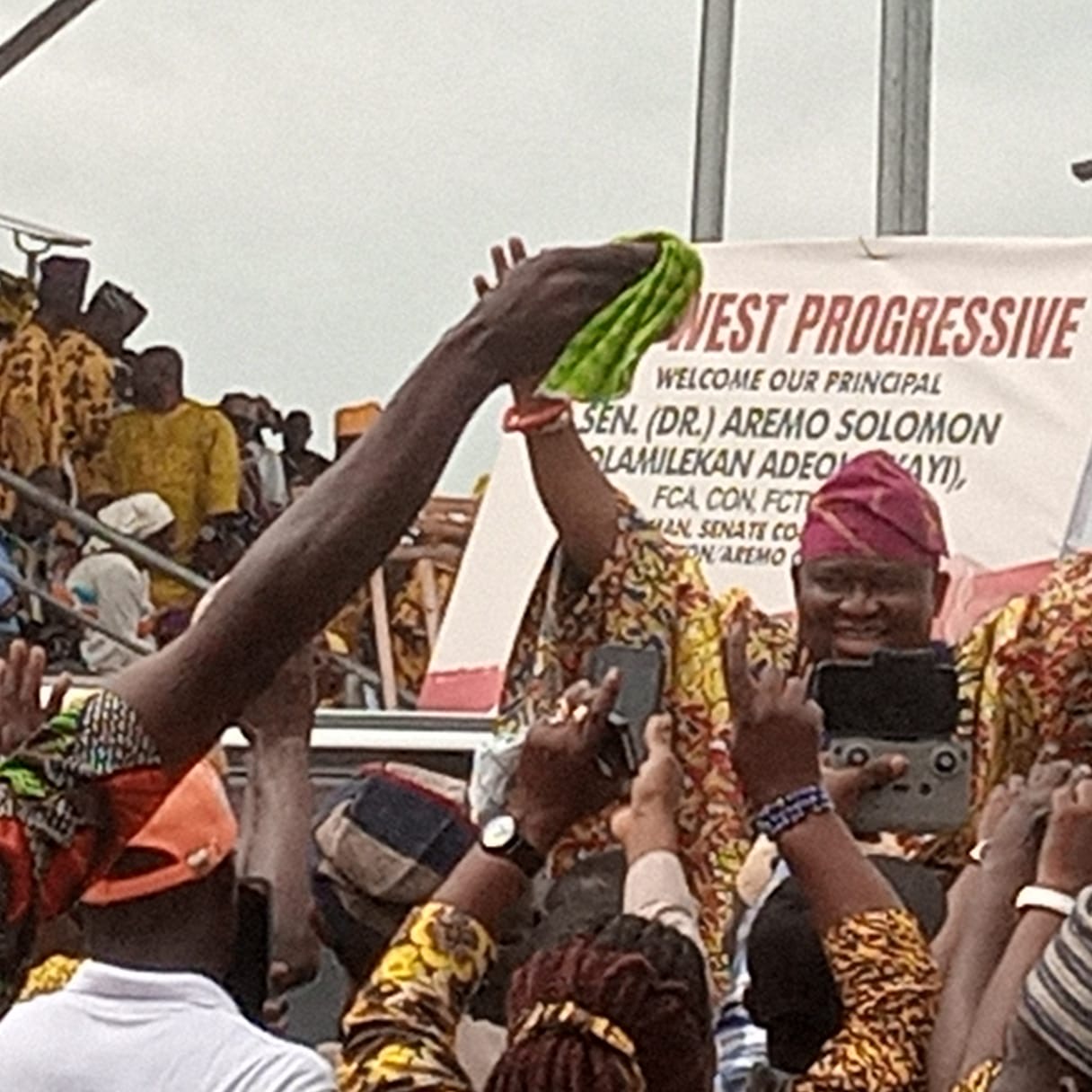 Senator Solomon Adeola Yayi made a grand entrance at the Oronna Ilaro Festival 2025, greeting a mammoth crowd of excited attendees. His presence added prestige to the annual cultural celebration, as he waved warmly to festival-goers, who responded with cheers and applause.